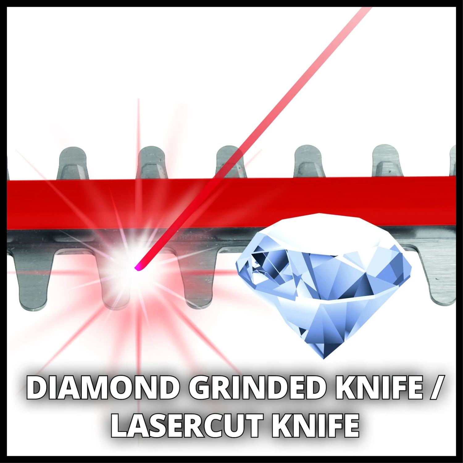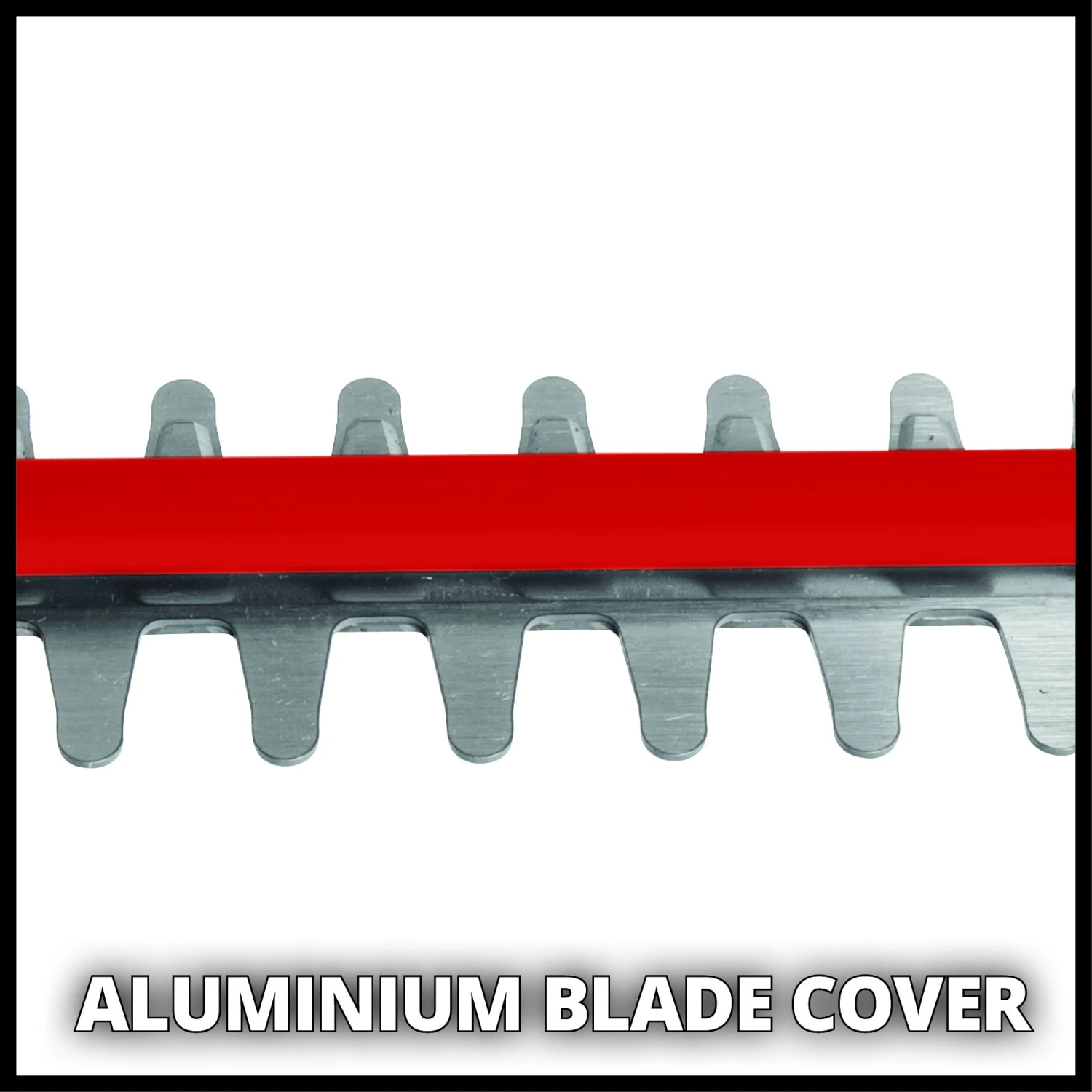 Met de Einhell accu heggenschaar GE-CH 36/61 Li Solo maakt u uw tuin mooier dan ooit, de heggenschaar past zich aan iedere hoek aan. Dankzij de Power X-Change technologie beschikt u over draadloze vrijheid; de flexibele heggenschaar wordt gevoed door hoogwaardige li-ion accu’s, die in meer dan 200 machines uit de Einhell porductlijn kunnen worden gebruikt. Een pluspunt voor het milieu: Uitlaatgassen behoren tot het verleden, maar ook lawaai en een stroomkabel vormen geen gevaar meer tijdens het gebruik. 2x 18V-accu’s zijn vereist. De messen van lasergesneden en diamantgeslepen staal zorgen voor kwaliteit en een lange levensduur. Ook de metalen tandwielaandrijving is ontworpen met het oog op een lange levensduur.