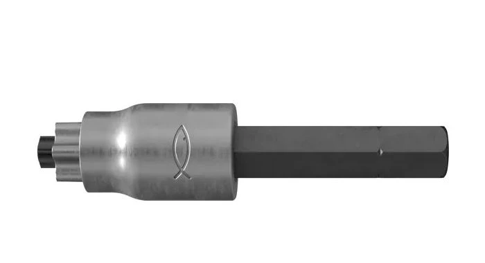 Voor de montage van de fischer stelschroef FAFS wordt de kroonbit op het lange bit gezet. Voor het afstellen van de houten constructie wordt het bit zonder de montage bus gebruikt.