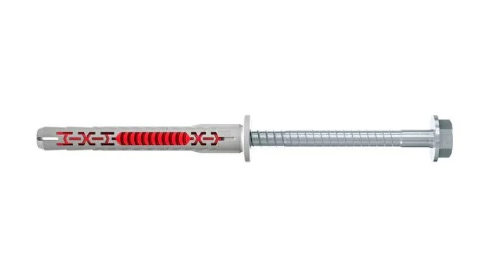 De fischer constructieplug DuoXpand met twee verankeringsdieptes is goedgekeurd voor meervoudige bevestiging van niet-dragende systemen in beton, metselwerk én cellenbeton. Dankzij de speciale geometrie en het gebruik van verschillende kunststoffen, past de plug zich perfect aan de ondergrond aan. Het assortiment bestaat uit diameters 8mm en 10mm en lengtes tot en met 230 mm. De DuoXpand met zeskant kop en aangeperste onderlegring is zeer geschikt voor het bevestigen van metalen aanbouwdelen in metselwerk of beton.