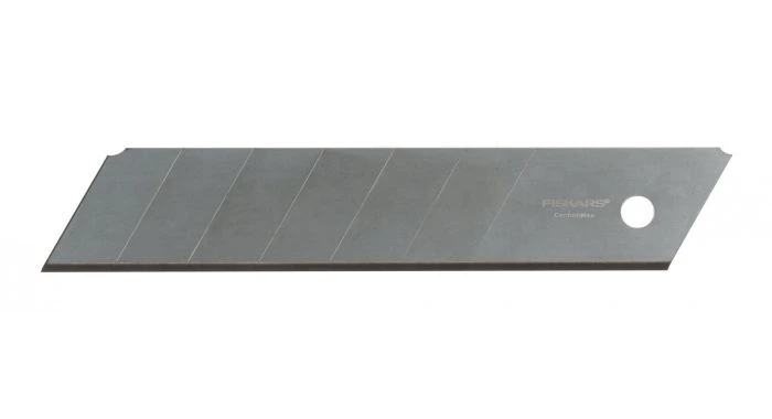 Reservemessen voor Pro CarbonMax™ afbreekmessen. CarbonMax™ messen hebben de gepatenteerde Fiskars snijrandcoating die 24x langer meegaat dan die van standaardmessen. De messen zijn uitvoerig getest en gecontroleerd in het laboratorium. De verpakking bevat 5 afbreekmessen van 25 mm.