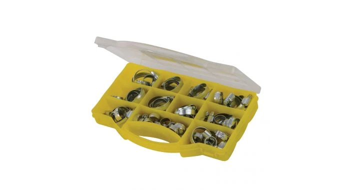 Roestbestendige zink-platering. Voor het verbinden van slangen op leidingen. Ideaal voor algemeen gebruik en op voertuigen. Maten: 10-16 mm, 13-19 mm, 18-25 mm, 20-32 mm en 25-38 mm. Handige gevakte opbergkoffer.
