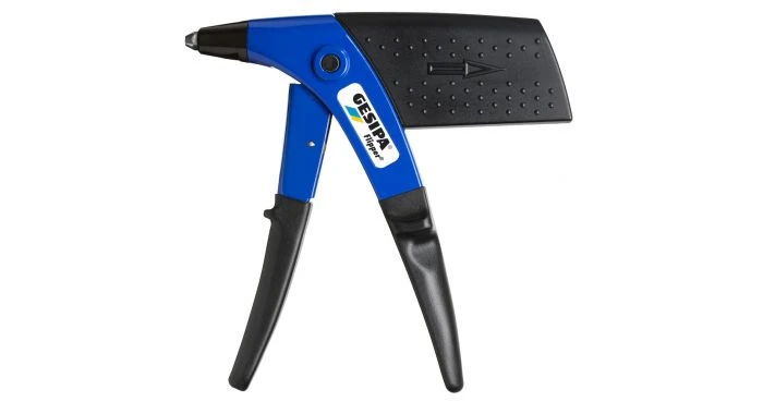 De GESIPA Flipper is een slimme handtang, speciaal ontworpen om de plaatsingskracht met 40% te reduceren. Huis van gegoten aluminium. Stalen robuuste bedieningshendel. 40% minder plaatsingskracht nodig. Hendel is voorzien van retour veer waardoor de tang gebruiksklaar is na elke slag. De afgebroken stift wordt naar achteren afgevoerd naar de opvangbeker. Eenvoudig te legen opvangbeker. Met één hand te bedienen. Wordt geleverd met neusstukken 3.2-4.0 en 5.0mm.