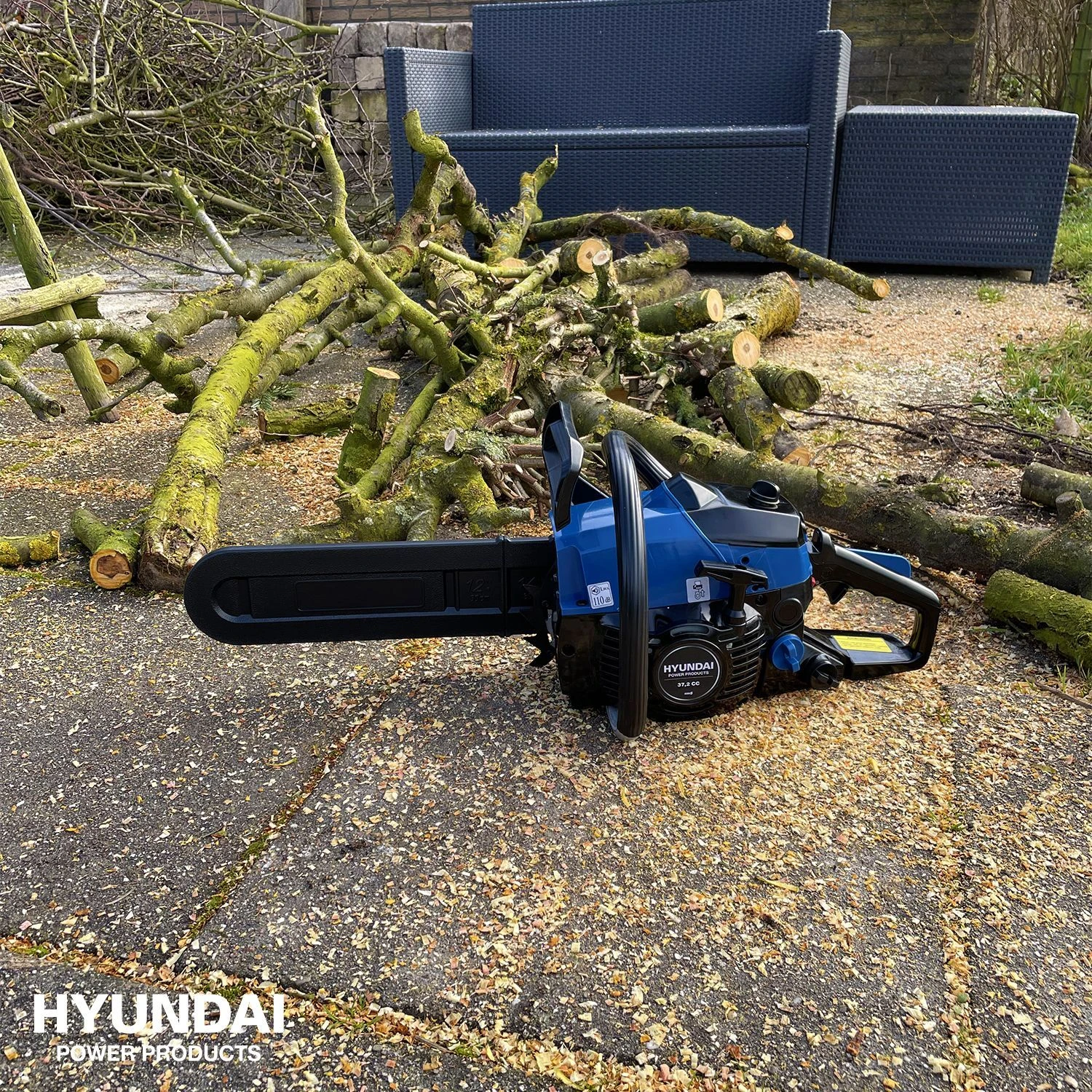 Deze krachtige Hyundai kettingzaag met 35 cm lang zaagblad is voorzien van een sterke luchtgekoelde en geluidsarme tweetaktmotor en is handig in gebruik. De machine is met name geschikt voor het snoeien en zagen van bomen en (brand)hout. De machine is voorzien van een comfortabel aanvoelende ergonomische handgreep en een veiligheidsbeugel. Veiligheidshalve beschikt deze kettingzaag over een beperkte terugslag en een kettingrem met quick-stop (0,15 seconden).