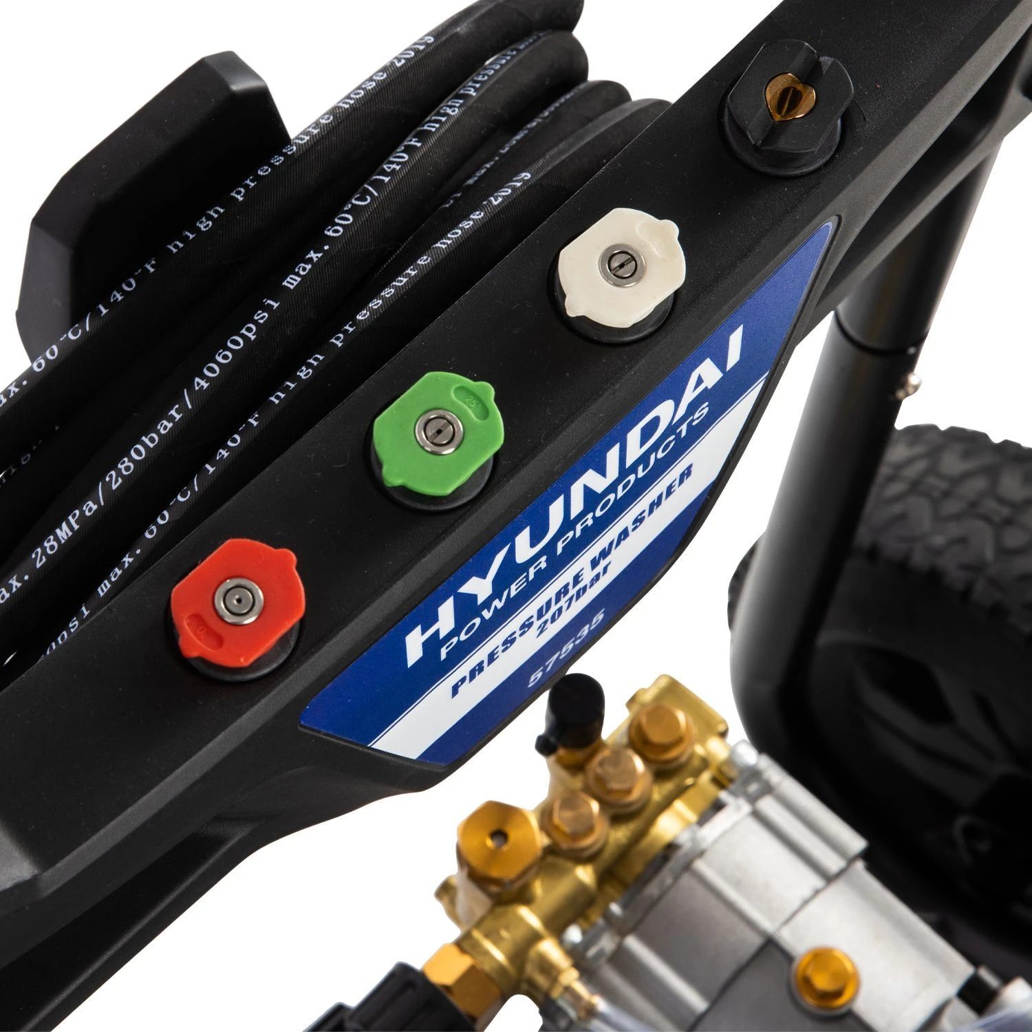 Deze krachtige 7 PK Hyundai hogedrukreiniger is met name geschikt voor de zwaardere schoonmaakklussen zoals het effectief reinigen van opritten, patio’s, voertuigen en ramen. De compacte motor heeft direct injectie met een laag brandstofverbruik. Deze mobiele machine heeft een werkdruk van wel 207 bar en een wateropbrengst van 600 l/u. De hogedrukreiniger heeft een 90 cm lange (quick-connect) spuitlans en een 8M1 lange hogedrukslang zodat lastige plaatsen goed bereikbaar zijn. De 4 snel koppelbare sproeiers (0°, 15°, 40° en standaard lage-druksproeier) kunnen snel en moeiteloos worden vervangen. De industriële pomp is voorzien van keramische afdichting met thermische beveiliging. Het robuuste stalen buisframe is voorzien van lekvrije banden en draagt zorg voor bescherming rondom, de duw-handgreep is uitgevoerd met soft-grip.