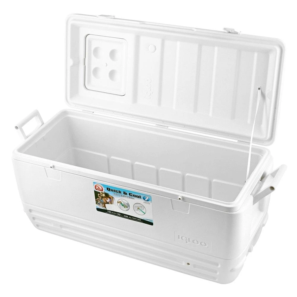 Door de Thermecool® isolatie houdt de Quick & Cool 150 wel tot 5 dagen ijs bij een omgevingstemperatuur van 30 graden! Met een inhoud van 142 liter (248 blikjes) is de koelbox groot genoeg om familie en vrienden dagenlang van koude hapjes en drankjes te voorzien. Maar ook voor professionele toepassingen is deze koeler uitermate geschikt, zo wordt de koelbox veel gebruikt bij evenementen, horeca, visserij, jacht en aan boord.