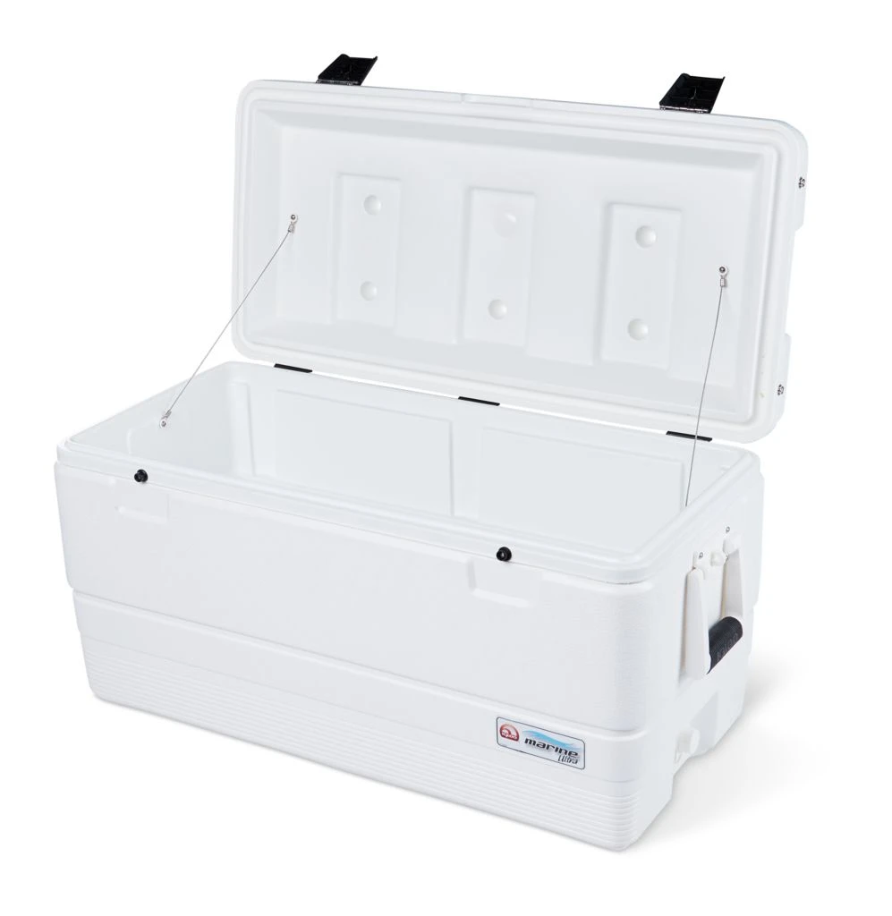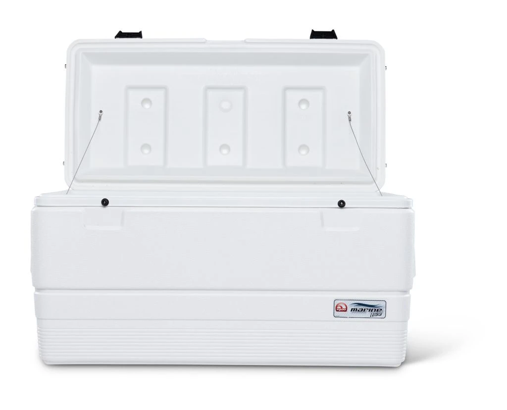 De Marine Ultra 94 bevat alle eigenschappen van de Marine-serie zoals UV-bescherming en roestvrijstalen onderdelen wat de koelbox uitermate geschikt maakt voor de boot. De koelbox is gebouwd om de barre, natte leefomgeving op een boot te weerstaan en uiteraard om je vangst van de dag, drankjes en/ of snacks koud en vers te bewaren. De koelbox houdt namelijk tot wel 5 dagen ijs vast bij een omgevingstemperatuur van 30 graden.
