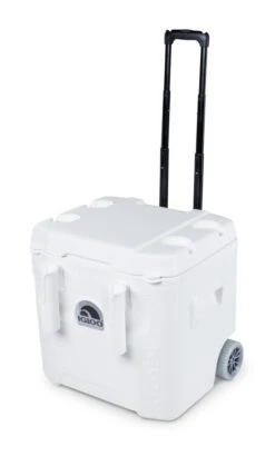 De Igloo Marine Quantum 52 koelbox heeft een soepel verrijdbaar ontwerp en ideaal om eten en drinken voor een klein gezelschap in het park, het strand, op een boot of om uw vangst koel te houden. Door de wielen wordt de koeler iets opgehoogd en komt dus niet in aanraking met een warme of vieze ondergrond. Door de geïntegreerde handvatten is de koeler eenvoudig te tillen. Door een speciaal aangebrachte laag in het isolatiesysteem blijft uw ijs tot wel 5 dagen goed bij een omgevingstemperatuur van 30 graden.