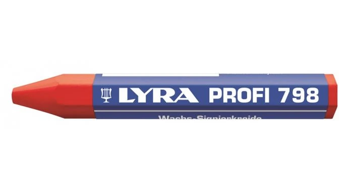 Waskrijt Profi 798, uitermate geschikt voor het markeren op nat en droog hout, beton en metaal. Het hoge was percentage zorgt voor een betere hechting. Lyra Wasmerkkrijt Profi 798 rood (12 st)
