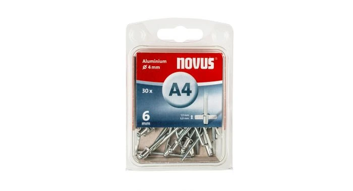 Blinde klinknagels van aluminium: Optimaal geschikt voor het bevestigen van: Non-ferrometaal Kunststof Licht bouwmateriaal Leer StoffenNovus blindklinknagel A4 X 6 Alu SB, 30 st.