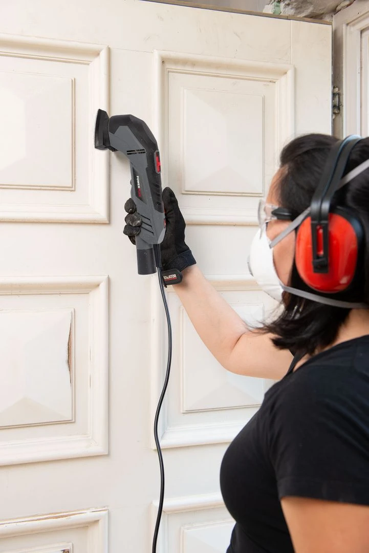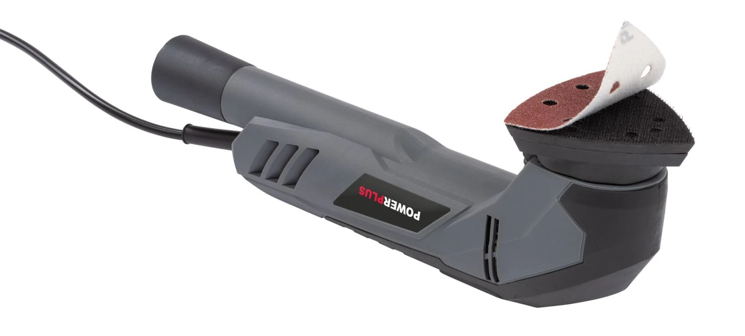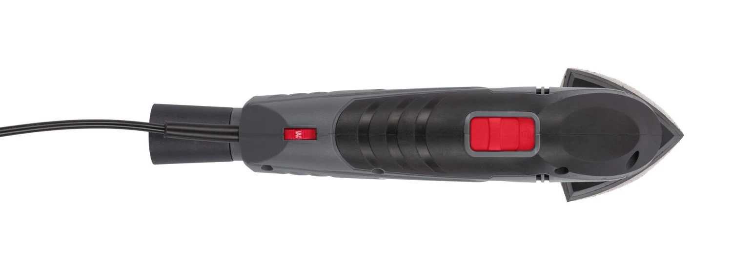 De driehoekige schuurzool is voorzien van een klittenbandsysteem. Zo kan het schuurpapier snel en eenvoudig gewisseld worden. Dankzij de stofzuigeraansluiting op het handvat kan overtollig schuurstof onmiddellijk opgezogen worden, voor een aangename en gezonde werkomgeving.