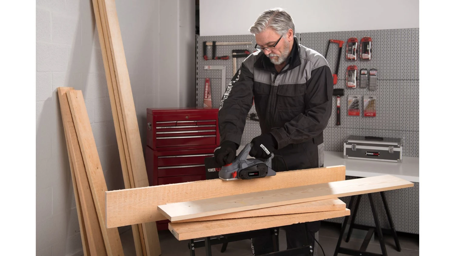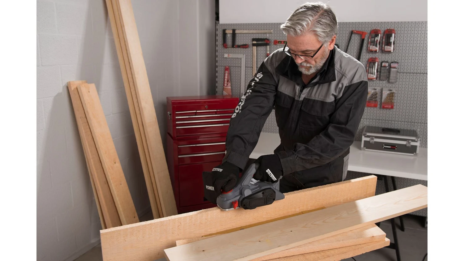 Houten oppervlakken gladschaven, hoeken afschuinen of sponningen maken, het gaat allemaal met deze schaafmachine van 900 W. Je schaaft met een breedte van 82 mm, waardoor het werk goed vooruitgaat. Je bepaalt ook zelf hoeveel hout je wegneemt. De schaafdiepte stel je namelijk heel precies in tussen 0 en 3 mm.