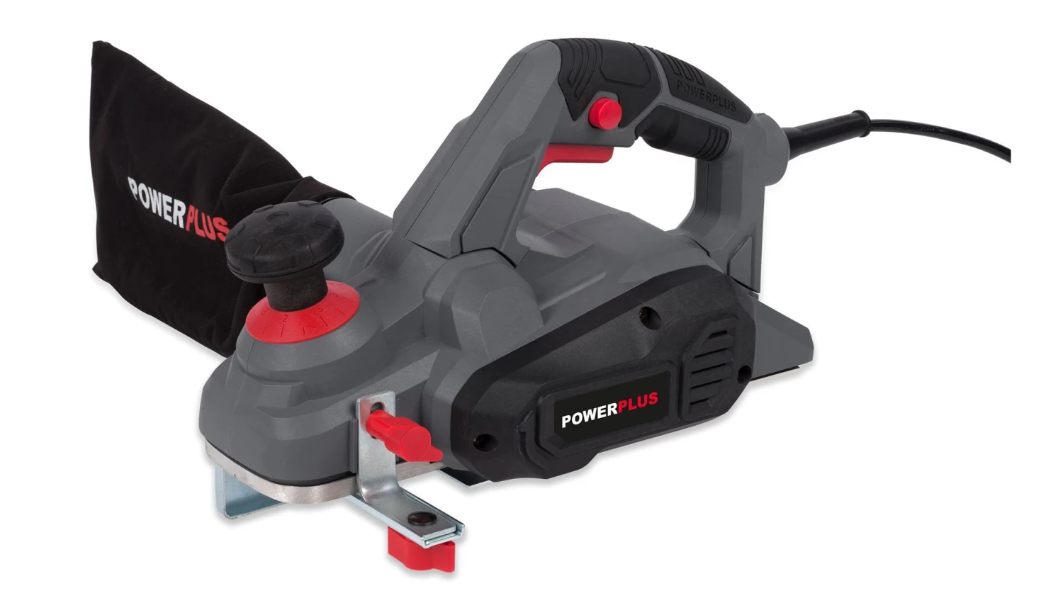 Stof vangt de POWE80030 op in de bijgeleverde stofzak. Of je sluit de schaafmachine rechtstreeks aan op de stofzuiger, dat gaat ook.