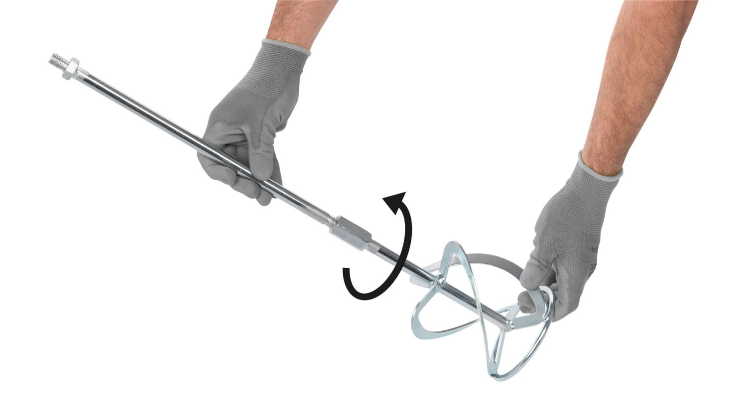 De meegeleverde roerstaaf van 590 mm en een diameter van Ø120 mm mengt alles mooi homogeen, zonder klonters. Hij is gemakkelijk los te maken om te reinigen.