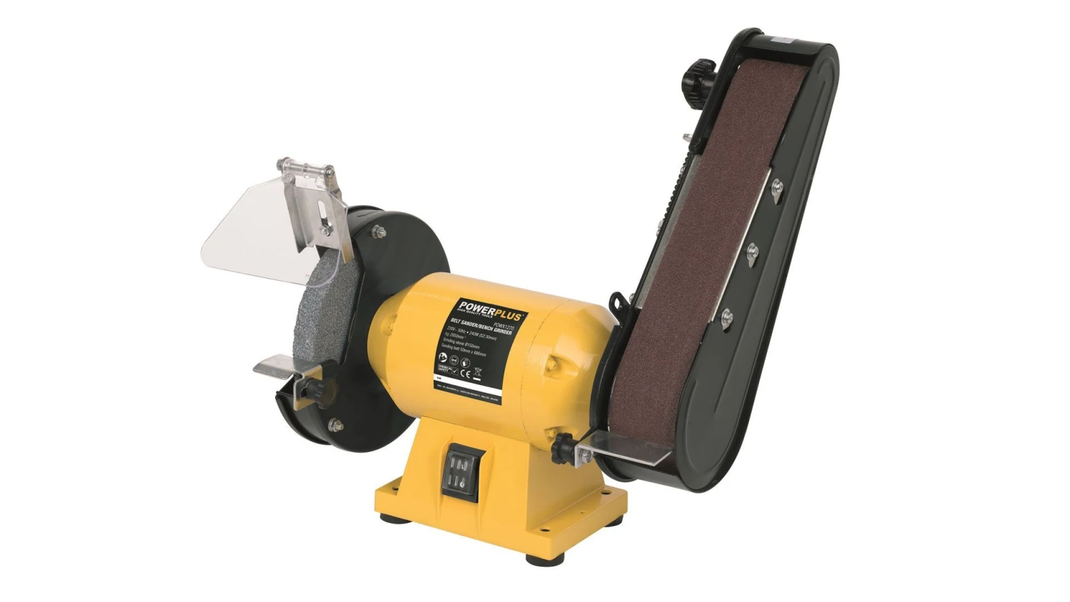 Met dit 2-in-1 gereedschap haal je zowel een bandschuurmachine als een slijpmachine in huis. Met slechts één toestel kan je zowel hout schuren als metaal slijpen en dat met een snelheid van 2950 min-1. De bandschuurmachine wordt geleverd met twee schuurbanden, eentje met een fijnere korrel K60 en eentje met korrel K120 voor het grovere schuurwerk. De slijpmachine met Ø150mm slijpschijf heeft een vonkenscherm waarmee je beschermd bent tegen vonken.