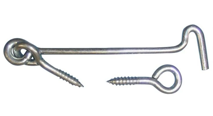 QlinQ® rvs A2 windhaak. met schroefogen. Een windhaak kan een deur (of andere bewegende delen) vastzetten aan een muur of paal. Verkrijgbaar in diverse afmetingen in staal verzinkt of roestvaststaal voorzien van twee bijbehorende ogen. De afmeting is de lengte x de draaddikte in millimeters. waarbij de lengte gemeten is zonder de schroefogen. rvs A2 zorgt voor een uitstekende corrosiebestendigheid onder normale atmosferische omstandigheden.