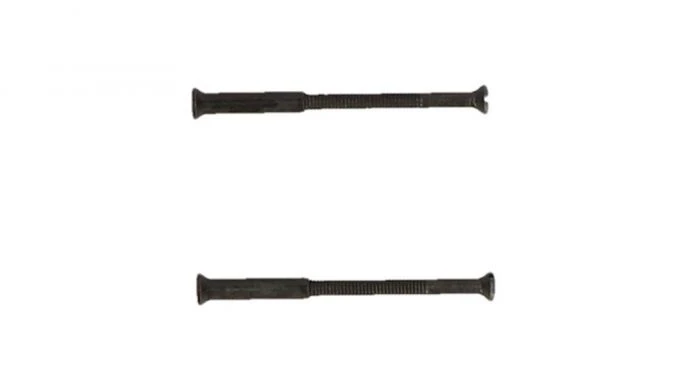 Paar zwarte patentboutjes. Eén paar bestaat uit 2 boutjes en 2 hulsjes. Afmeting huls M4 x 38 mm, met zaagsnede. Deze patentbouten zijn geschikt voor het vastzetten van het aluminium zwart deurbeslag. Op blister.