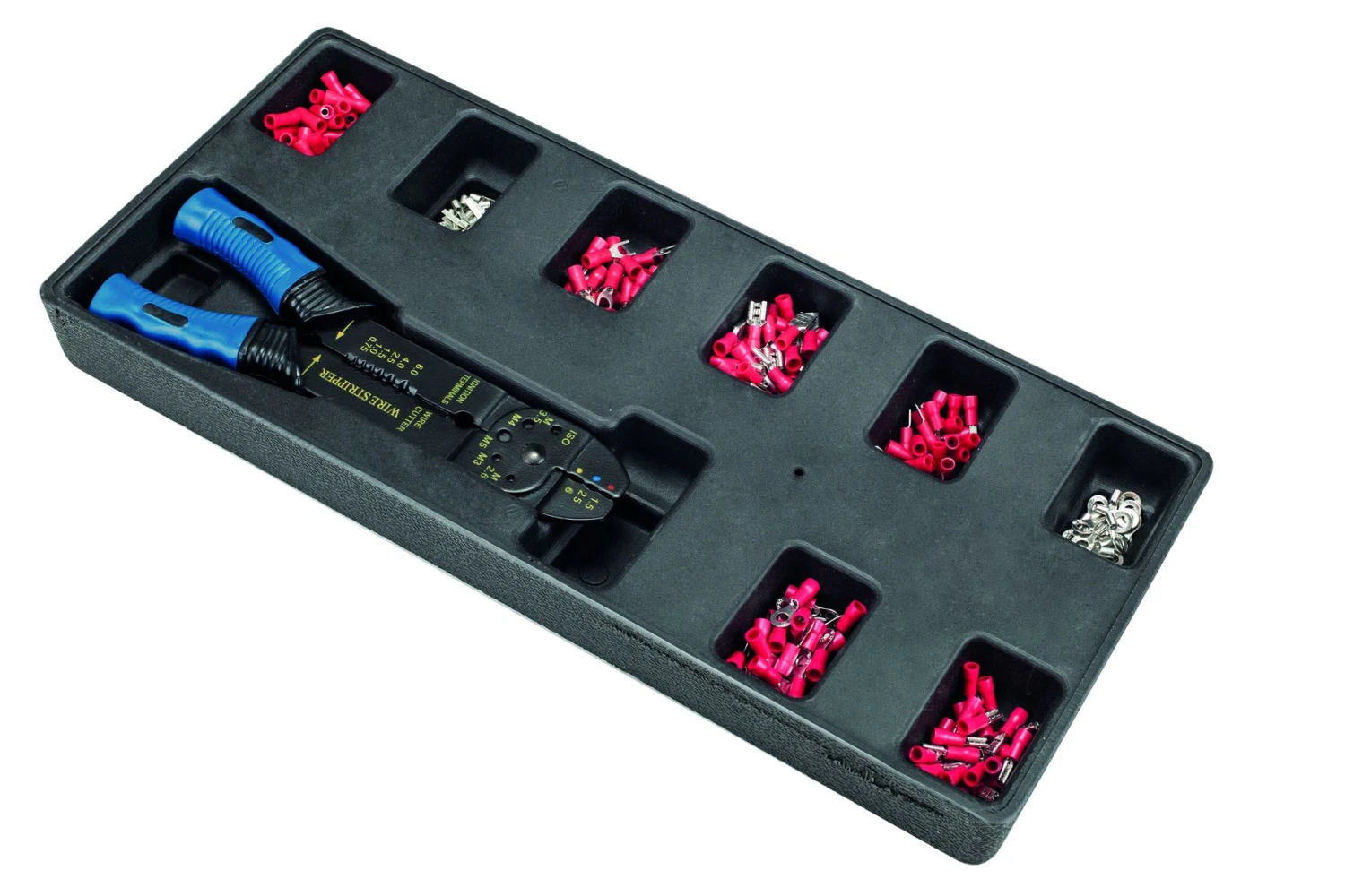sleufschroevendraaiers, borgringtangen, ratelsets, geïsoleerde schroevendraaiers, precisie schroevendraaiers, inbussets, krimpgereedschap, kruiskopschroevendraaiers, punttang, combinatietang en zijkniptang.