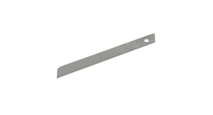 Gehard stalen afbreekmesjes met 11 segmenten per mesje in een plastic opberghuls. Te gebruiken met 9, 18 en 25 mm afbreekmessen voor algemeen snijden en trimmen.