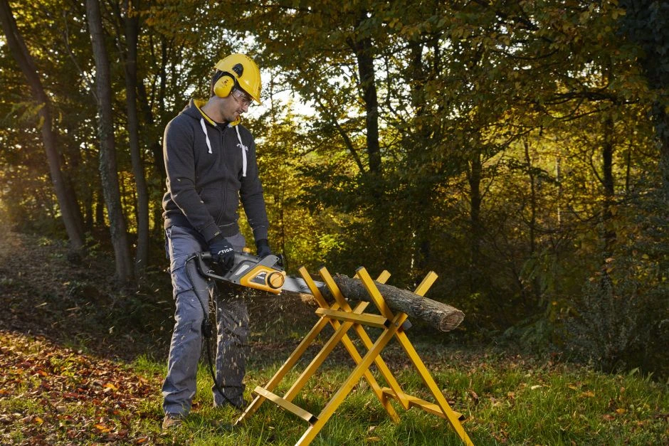 Ga door planken en stammen met de CS 122c (16″) elektrische kettingzaag met performante 2.2 kW motor. Dit toestel is uitgerust met een kwalitatief 40 cm lang zwaard.