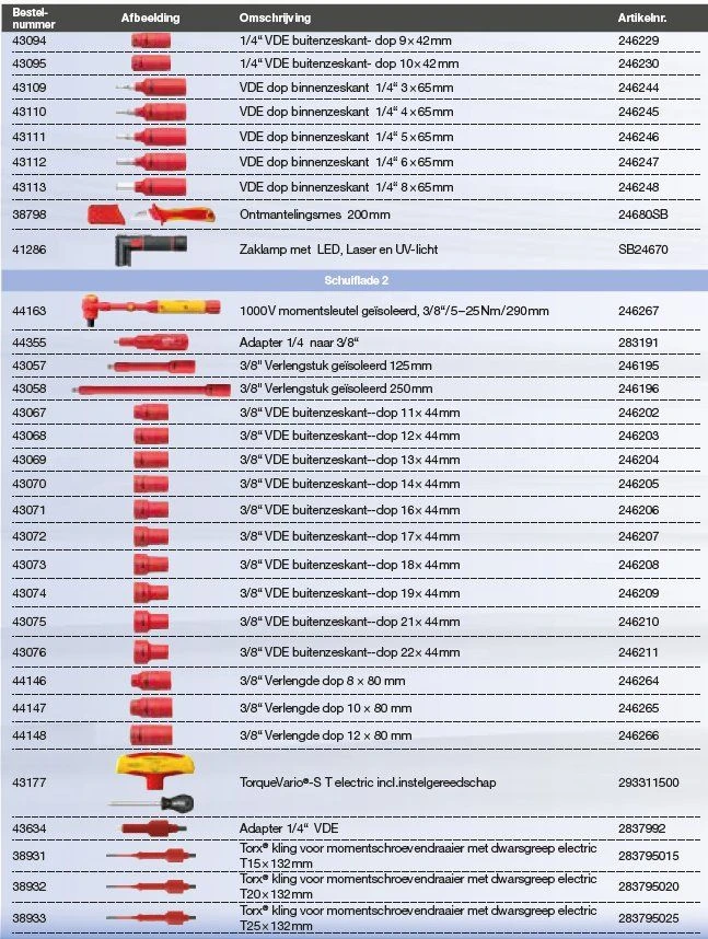 Perfect georganiseerd, van begin af aan, wanorde is niet mogelijk. Van spanningstester tot momentsleutel, van veiligheidshandschoenen tot waarschuwingsbord: met de compleet gevulde gereedschapstrolley heb je altijd het passende Wiha gereedschap tot je beschikking. Door extra opbergruimte en de geïntegreerde 4-voudige contactdoos kan de wagen ook met elektrische apparatuur worden uitgebreid.
